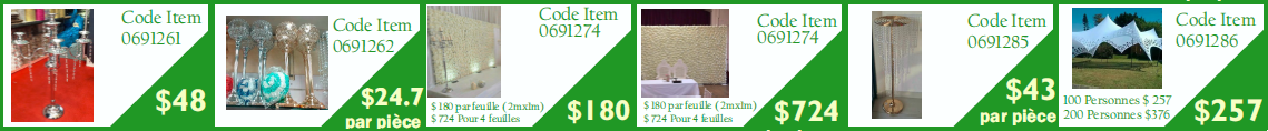 Nous vous offrons une gamme de Bougoire, Housse, Nappe, Tente. etc... pour la décoration de toute sorte de cérémonie.