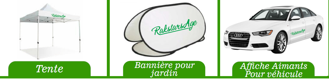 RAKSTARSAGE offre toutes sortes d'imprimées : Sur Bannière, Combinaison de travail, sur casquette. Etc...